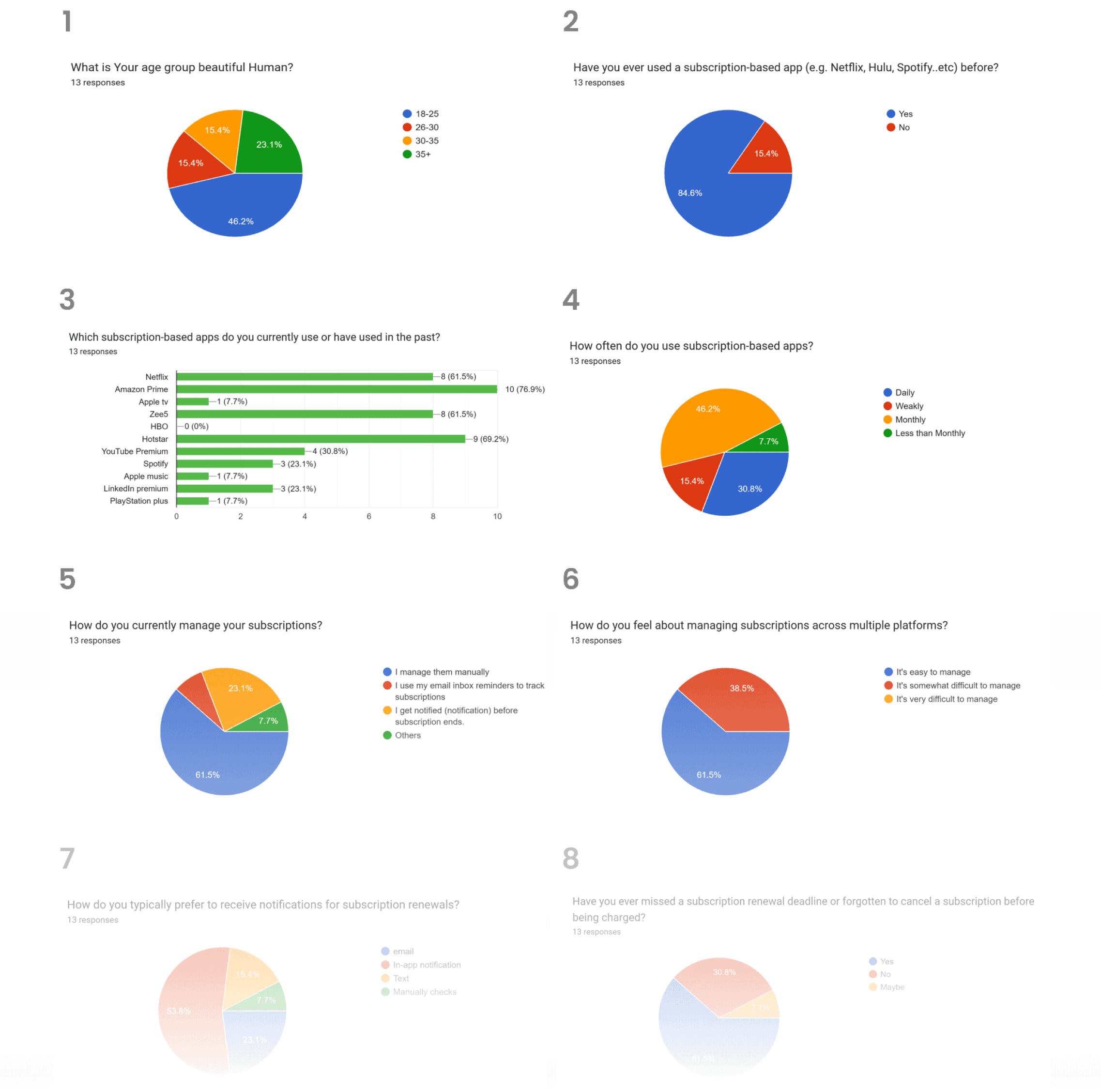 I conducted survey with 13 participants, using the following questions to gather the necessary data.